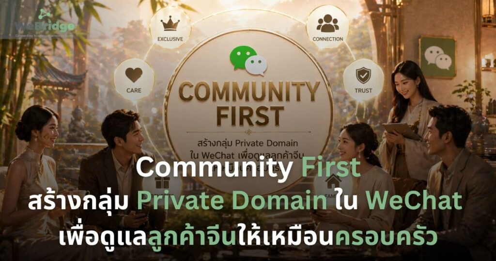 การสร้าง Private Domain ใน WeChat ด้วยแนวคิด Community First คือการลงทุนในความสัมพันธ์ระยะยาว มันอาจต้องใช้เวลาและความพยายามในการดูแล แต่ผลลัพธ์ที่ได้คือฐานลูกค้าที่จงรักภักดี พลังแห่งการบอกต่อ และความสำเร็จที่ยั่งยืนในตลาดจีนที่เต็มไปด้วยความท้าทาย เปลี่ยนลูกค้าของคุณให้เป็นครอบครัว และพวกเขาจะกลายเป็นพลังที่ขับเคลื่อนแบรนด์ของคุณไปข้างหน้าอย่างมหาศาล