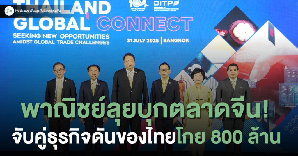 กระทรวงพาณิชย์เดินหน้าผลักดันผู้ประกอบการไทยบุกตลาดจีนเต็มกำลัง นำโดย สุชาติ ชมกลิ่น รัฐมนตรีช่วยว่าการกระทรวงพาณิชย์ จัดงาน “จับคู่ธุรกิจเชื่อมไทยสู่โลก” (Thailand – Global Connect) เปิดเวทีให้ผู้ประกอบการไทยเจรจาการค้ากับผู้นำเข้าจีนและต่างประเทศ หวังดันสินค้าศักยภาพไทยตีตลาดแดนมังกรและตลาดโลก พร้อมสั่งการ ทูตพาณิชย์ทั่วโลก 58 แห่ง หนุนผู้ประกอบการไทยเหมือนครอบครัวเดียวกัน